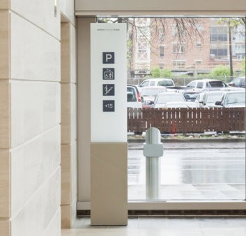 企业落地式功能图形标识牌,所谓落地式就是放在地上立起来的形式,这块标牌的功能设计是停车场、楼梯、电梯区域的提示说明图形,图形的简洁、明确、易识别为人们提供方便的区域了解,也是企业VI设计中很形象的一部分设计。