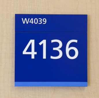 蓝色风格系列标识设计欣赏,白色的数字颜色设计与深蓝色底部标牌色彩的组成结合,突出整块标识牌的设计别致、显眼、形象,视觉上的冲击魅力很强,易识别。