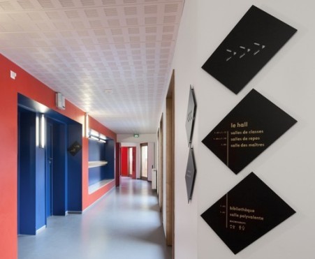 企业室内区域标识牌,贴墙式区域介绍说明标识设计欣赏,标识的设计主要是以长方形形状的黑色标牌和金色字体结合的标识牌,整体的色彩设计搭配与区域环境和谐,给人感觉整洁、大气、形象,也突出了企业的整套VI设计很有品质感,给受众提供一种很好的区域标识说明环境。