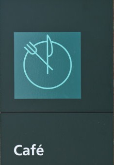 企业咖啡馆创意功能餐具时间图形标识,这个功能图形标识设计非常有创意性,带给工作人员一种具有时间观念的咖啡品尝时间,很温馨、很独特,是一块很有特色味道的企业咖啡馆功能标识牌。