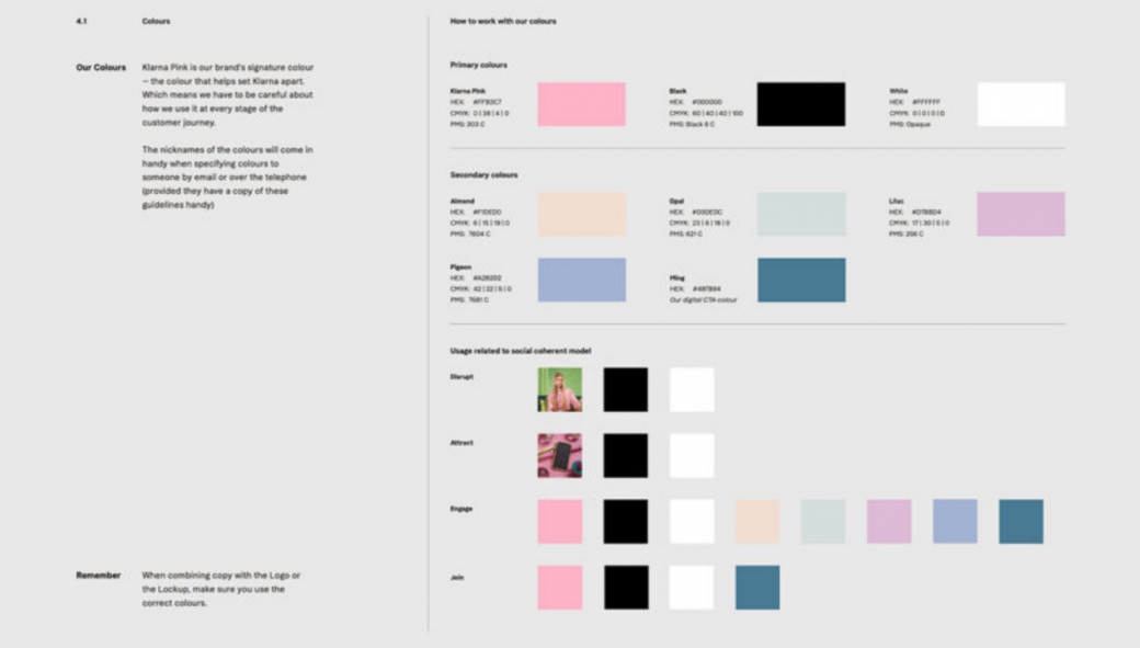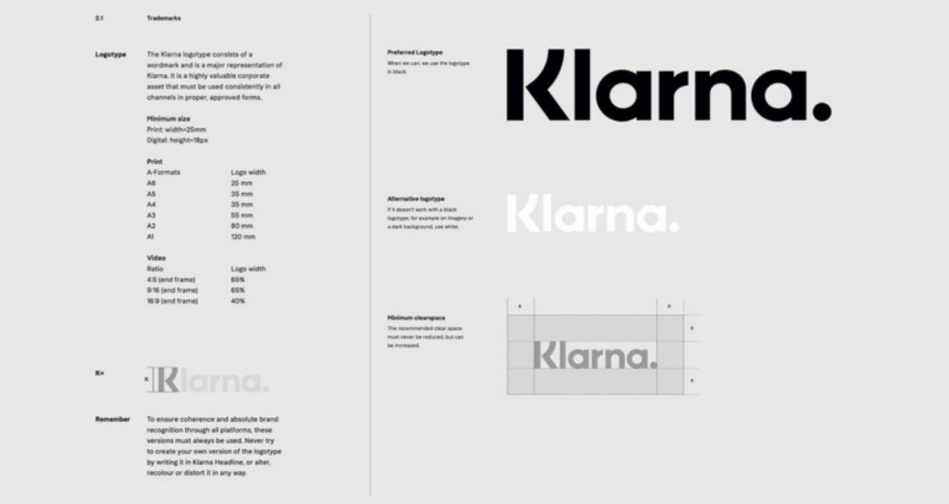 其品牌手册的文字部分甚至包括一个决策树,帮助用户确定何时使用“科技能源品牌”——一个抓住 Klarna 精髓的讽刺性拼写错误。